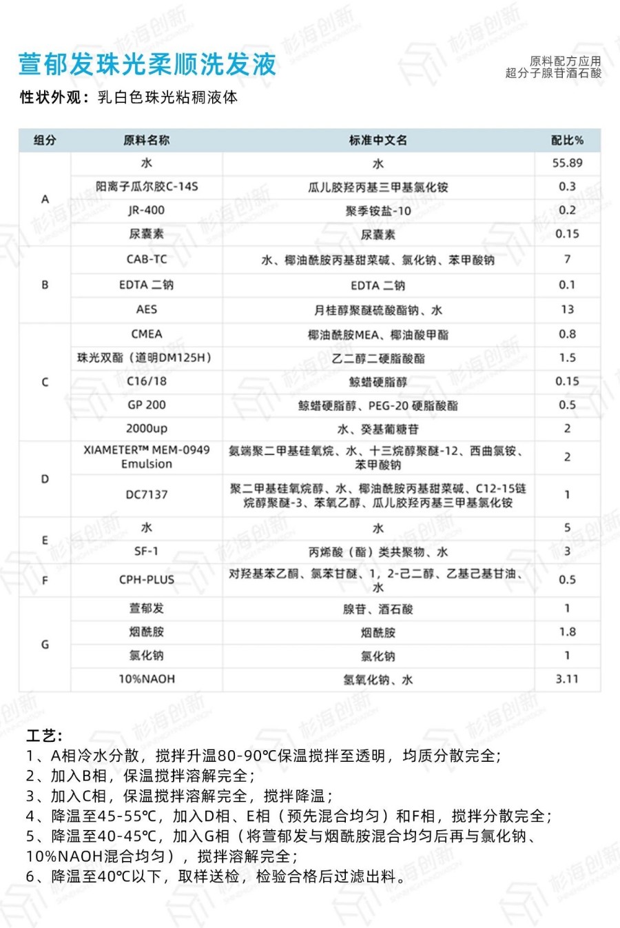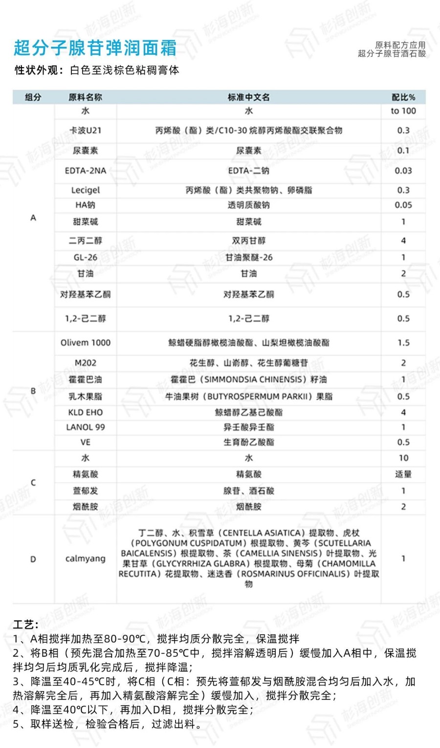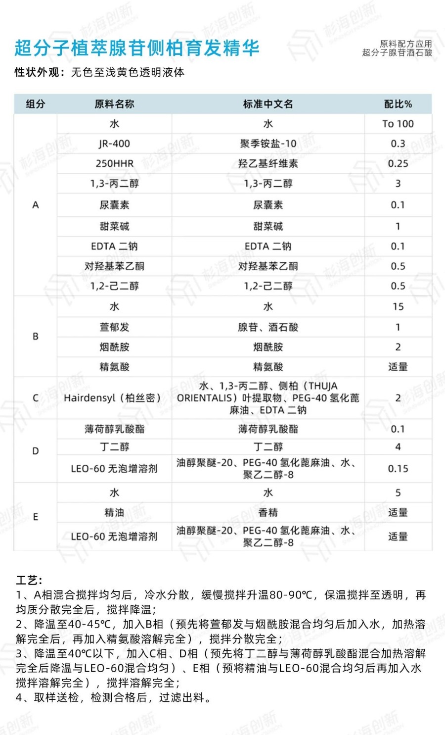 杉海创新配方部基于超分子腺苷这一优异的个护多功能原料,开发了系列配方,供您参考。