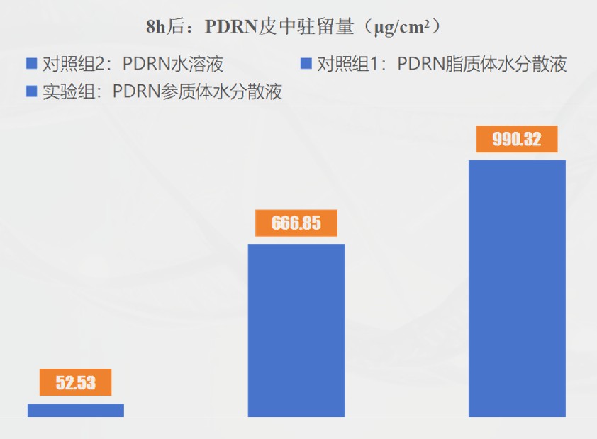 人参皂苷CK插入磷脂双分子层,帮助压实脂肪链排列、降低膜通透性,减少活性物泄漏并维持结构稳定,这让我们的产品可以包裹更高含量的PDRN,且透皮吸收效果更优;